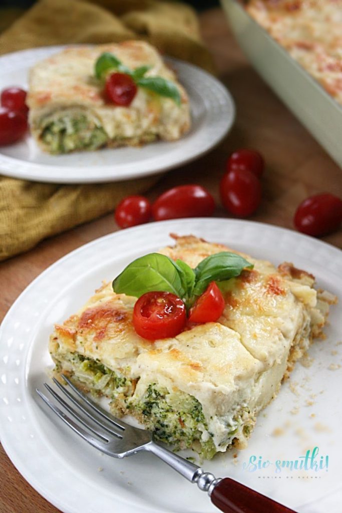 Zapiekanka naleśnikowa z brokułem i beszamelem