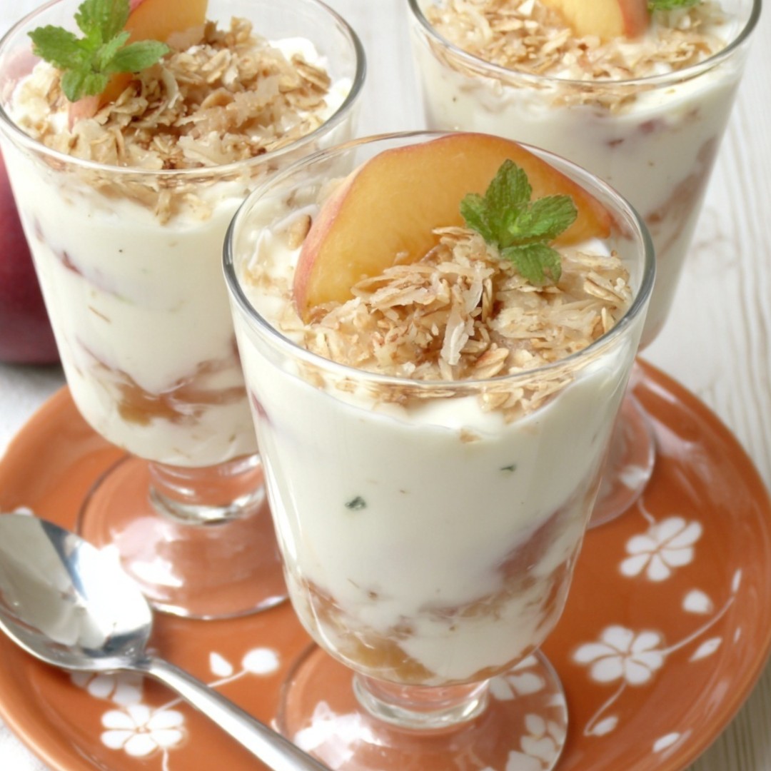 Wernisaże z jogurtem brzoskwiniowym i granolą kokosową
